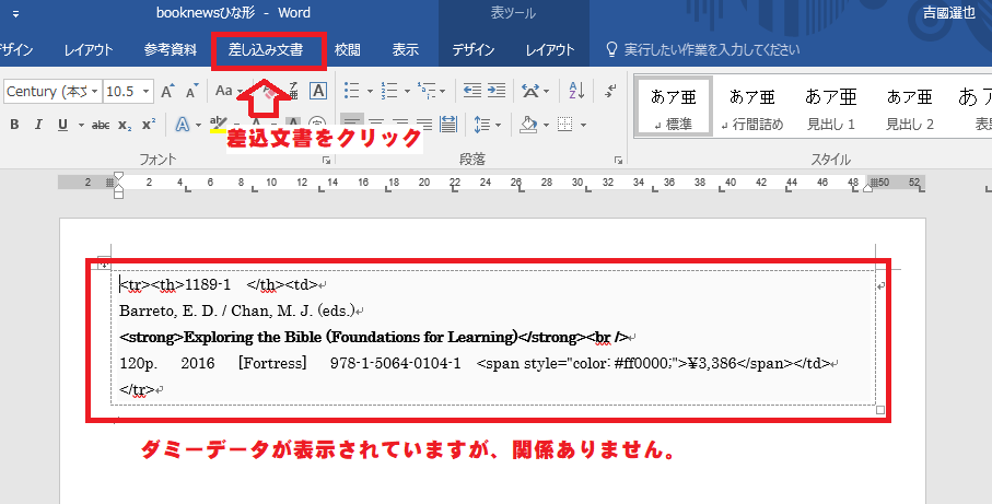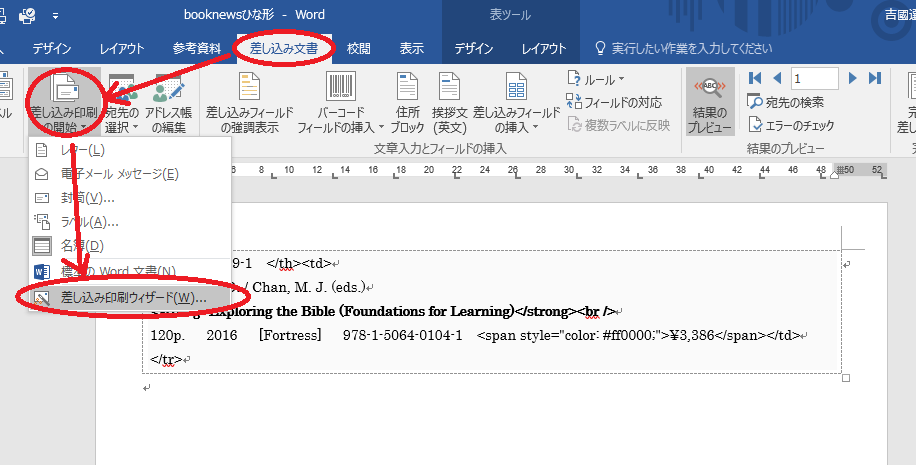 Word文書「BookNewsひな形」を開きます。