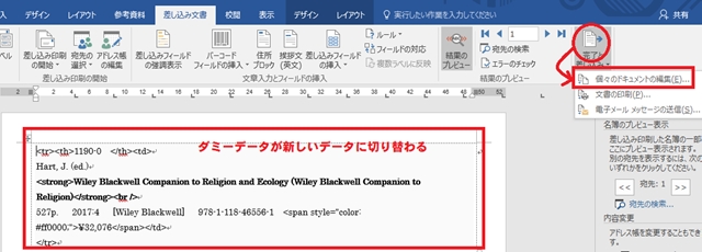 自動的に、新しいデータがひな形に流し込まれます。ダミーデータが切り替わっていることを確認してください。