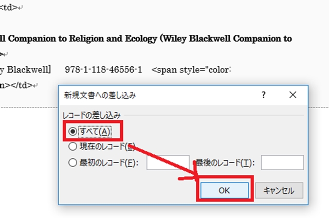 すべてのデータ(レコード)を流しこみます。「OK」クリック。