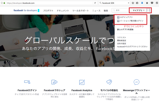 まずFBデベロッパーにログインする。
