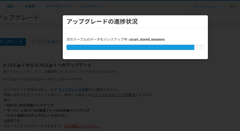 プリントアウト CS-cartアップグレードに際して、cscart_stored_sessionsのバックアップが長時間にわたることが判明。具体的にはこのデータのバックアップだけで現在は5時間ほどかかっている。 これを短縮化するために、phpMyadminにてこの部分のテーブルを空にし、作業をするように今後手順を改正。