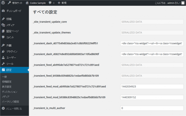 まず、「Options (オプション) は WordPress が様々な設定や構成を保存するために使用するデータの集まりです。」(Codexより)ここに設定した値は、データベースのwp_optionsテーブルに格納されますが、そのサイト固有の設定の集合と考えればいいと思います。ちなみにサイトのお引越しをする場合も、このテーブルの値をちょちょいと変更することになります。
