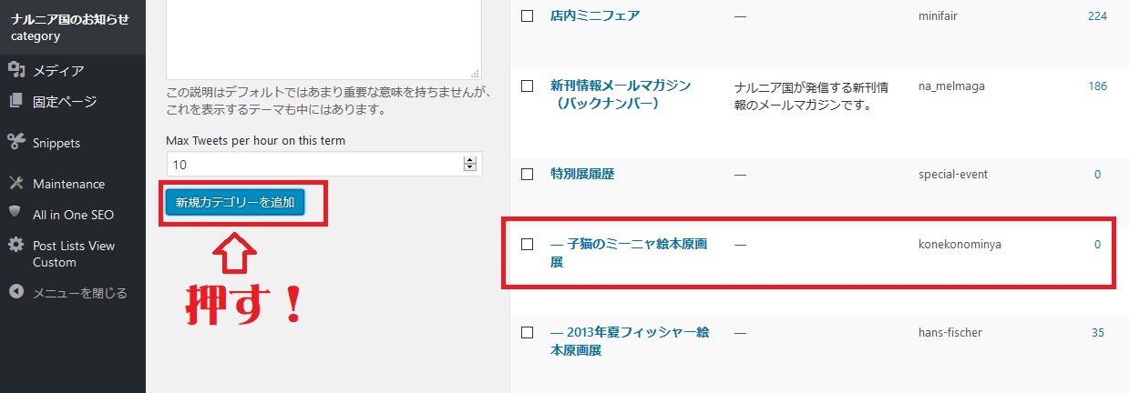 最後に下にある青い「新規カテゴリーを追加」ボタンを押せば、カテゴリーが出来上がります。